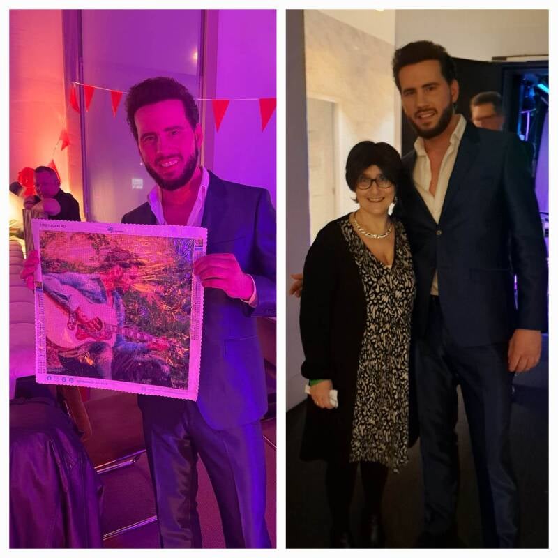 Ik kon ook nog op de foto met Bouke en Leon en de diamond painting die ik voor Bouke gemaakt had (Bouke met zijn gitaar), kon ik ook overhandigen.