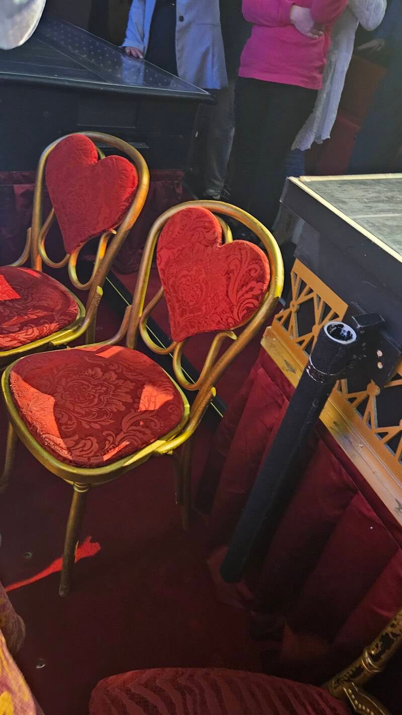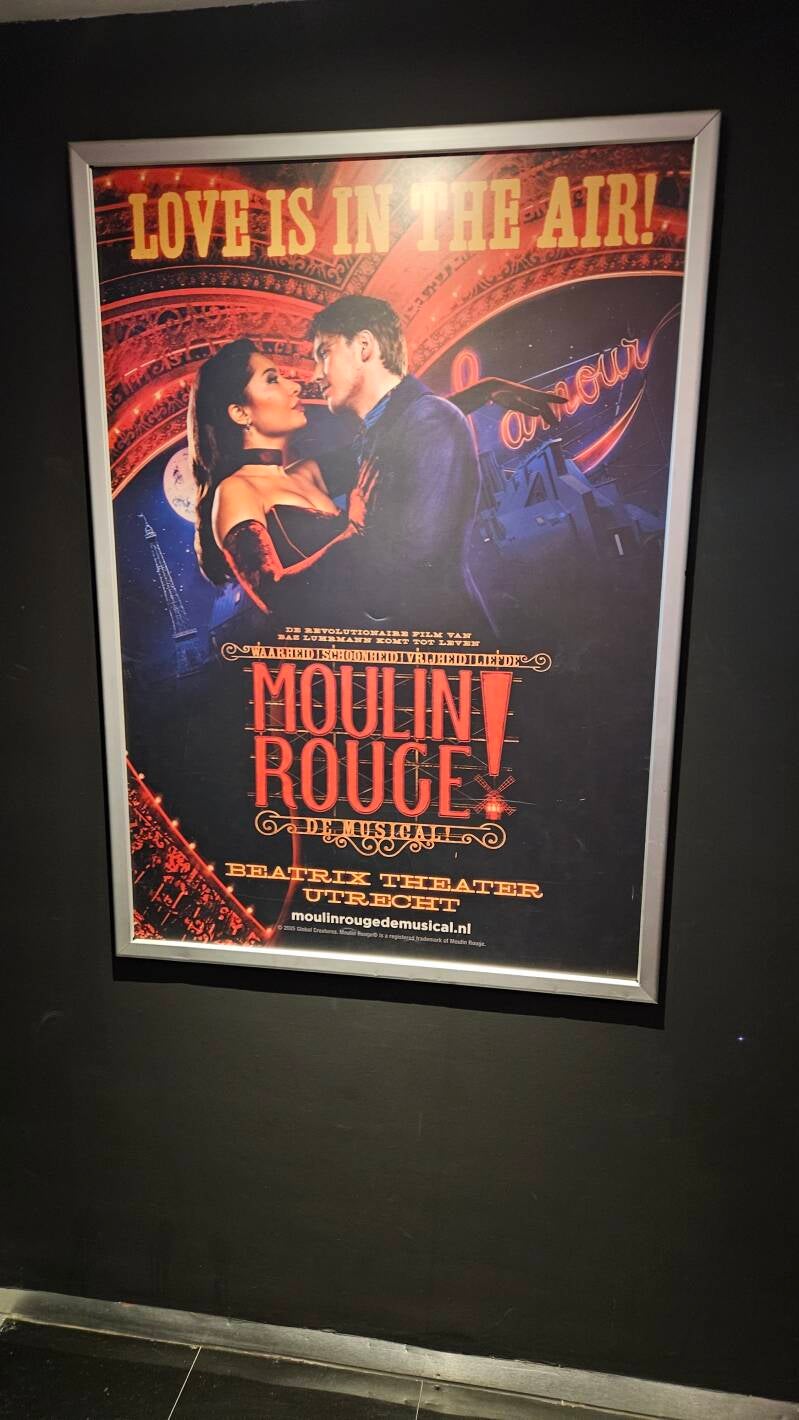 Deze kans was er uitsluitend omdat Moulin Rouge nu in het theater speelt, normaliter staan de rode tafeltjes met lampjes er natuurlijk niet.
