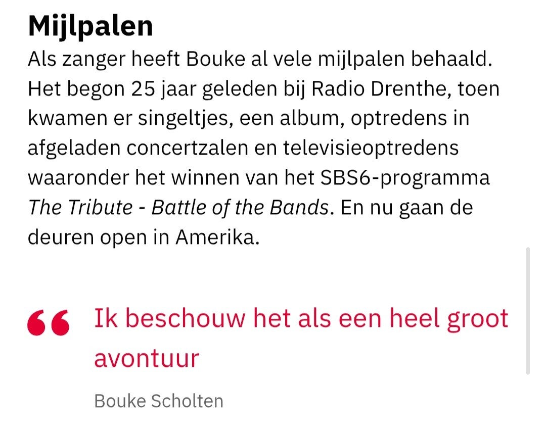 Persbericht op Bouke´s officiele pagina