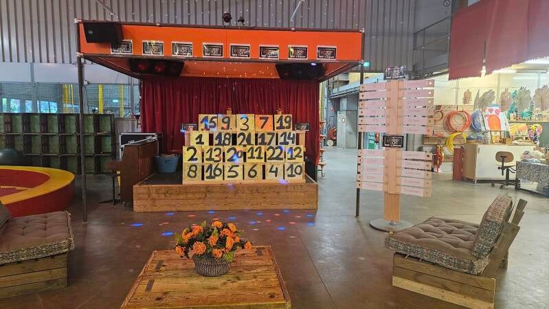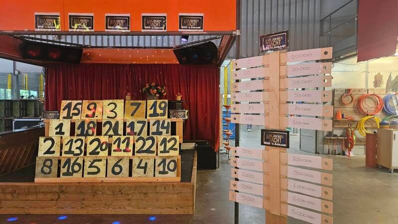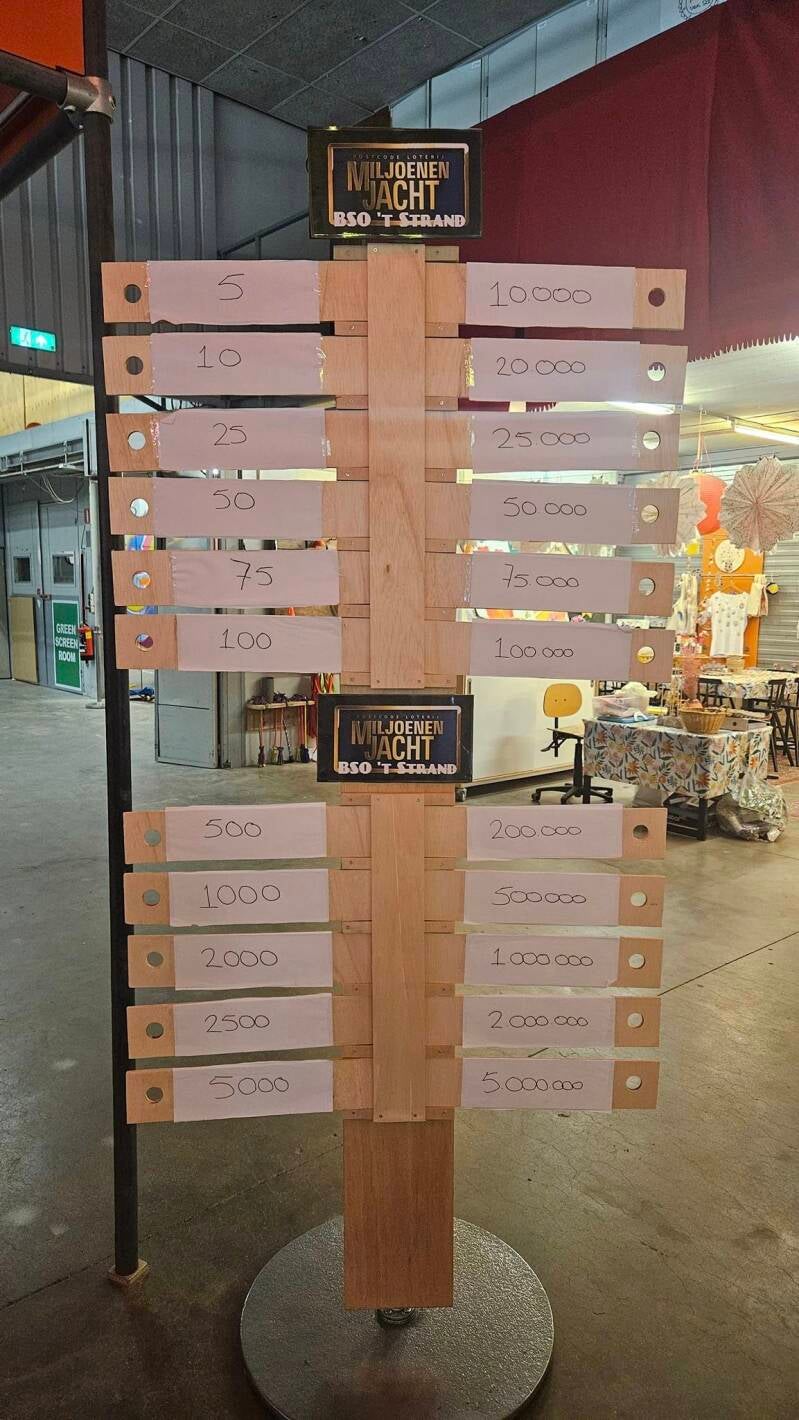 Ook heeft Michel een supertof systeem in elkaar getimmerd waarop bordjes met bedragen omgedraaid kunnen worden, zodat je op elk moment kunt zien welke bedragen er nog in het spel zitten.