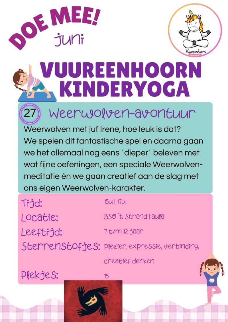 Weerwolven, het MEGA-populaire spel, in een speciaal kinderyoga-jasje gestoken.