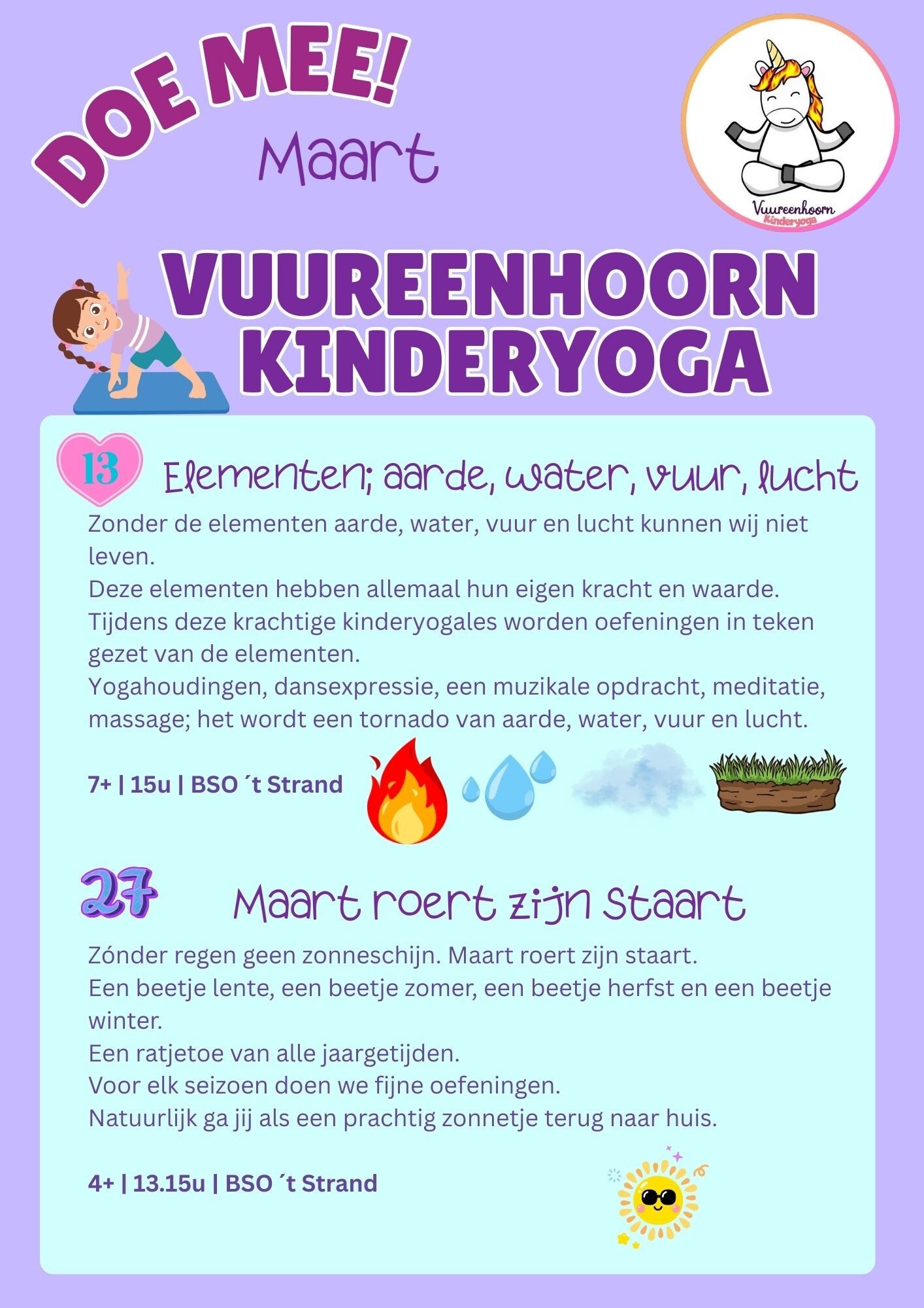 *Kosten Kinderyoga-lessen bedragen 8,00 per les per kind.