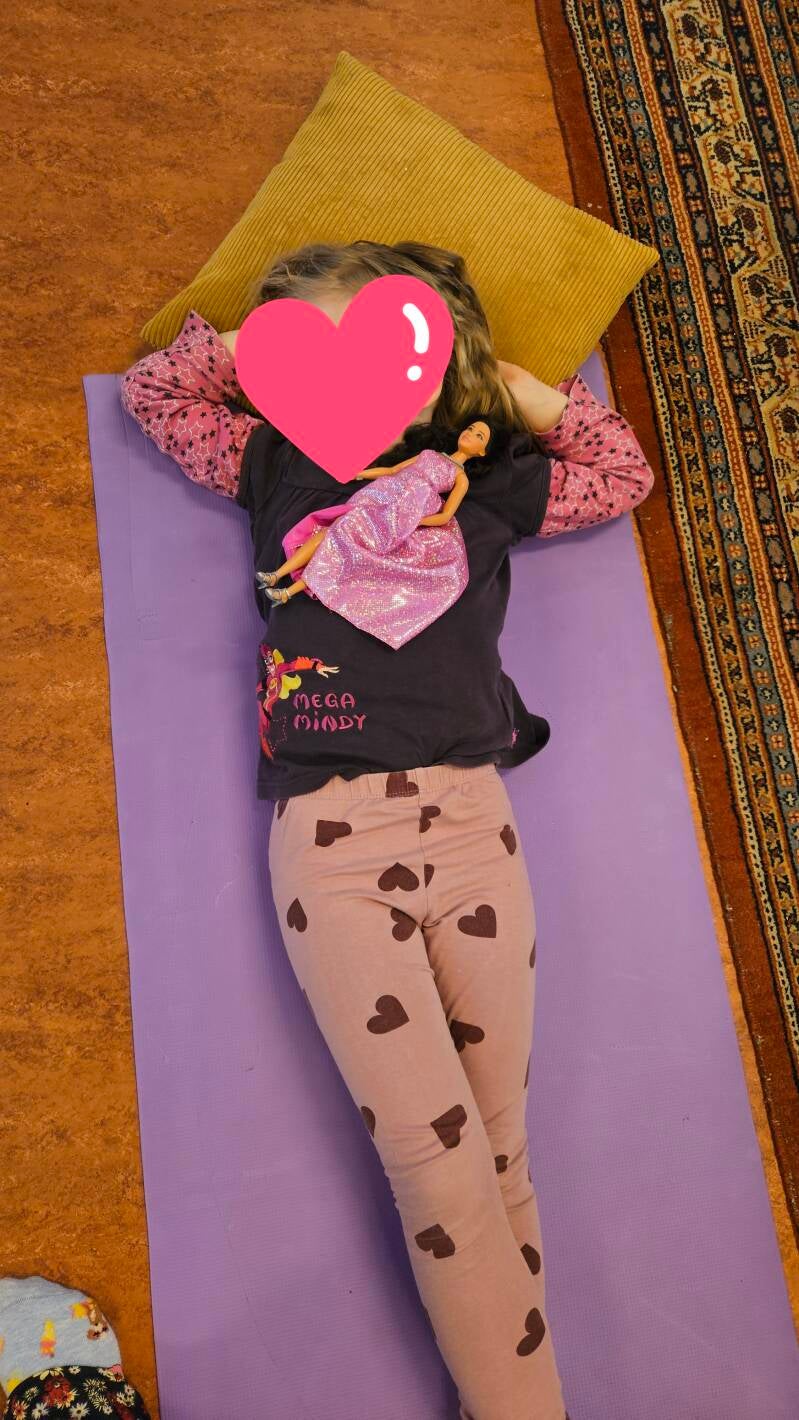 Deze Barbie hielp haar ook mee tijdens een bijzondere ademhalings-oefening, waarbij de Barbie op haar borst lag en zij deze met haar ademhaling omhoog en omlaag liet gaan.